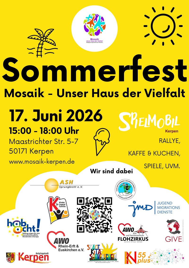 Am 17.06.2026 ist es wieder so weit: Wir feiern unser großes Sommerfest im Mosaik – unser Haus der Vielfalt!